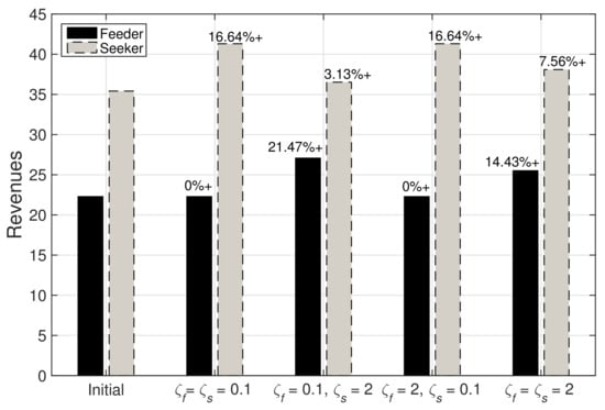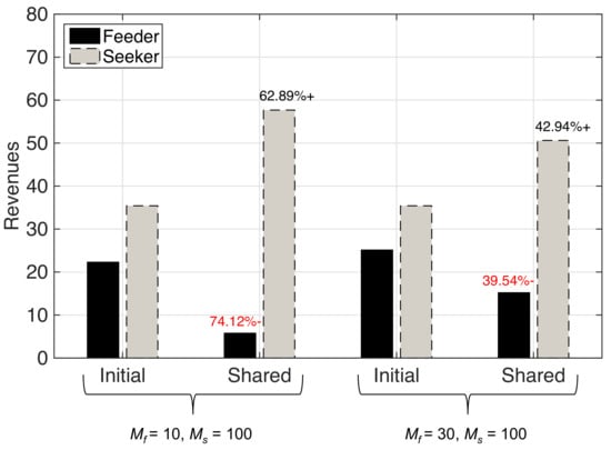 Comparison of initial revenues with revenues obtained from sharing network resources of the feeder and the seeker MNOs.