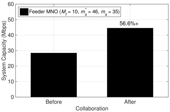 Before and after collaboration comparison of system capacity of the feeder MNO.