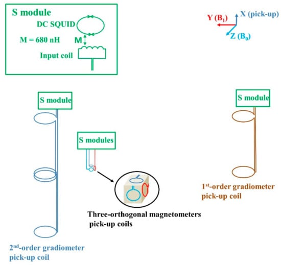 - Dong, H.; Qiu, L.; Shi, W.; Chang, B.; Qiu, Y.; Xu, L.; Liu, C.; Zhang, Y.; Krause, H.J.; Offenhäusser, A.; et al. Ultra-low field magnetic resonance imaging detection with gradient tensor compensation in urban unshielded environment. Appl. Phys. Lett. 2013, 102, 102602. [Google Scholar]
