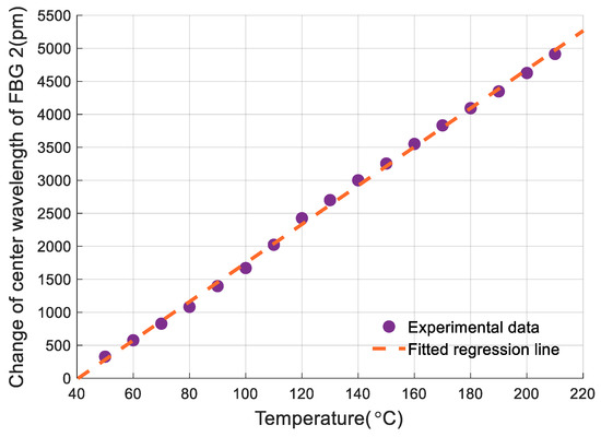 As mentioned in Section 2.1, FBG 2 is used for sensing temperature. Figure 11 shows the experimental data of FBG 2 and its fitted regression line.
