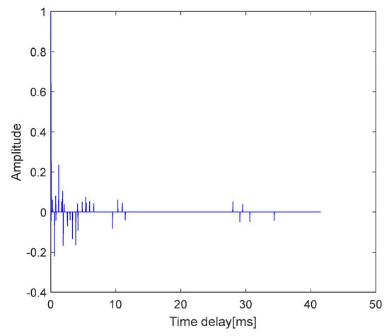 We used the MP algorithm to estimate the channel used in the experiment. The CIR of the pool channel is shown in Figure 15.