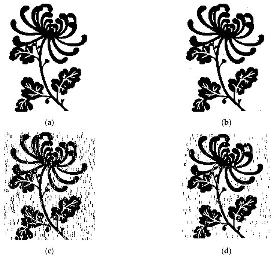 Transmitted and received images. (a) Original image; (b) received image in DSSS system; (c) received image in MCSK system; (d) received image in MCSK-VTRM system.