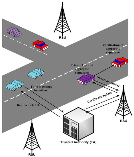 VANETs face many security challenges and issues in terms of authentication and privacy issues [18,19,20,21,22], and untrustworthy vehicles raise many security and communication issues [23]. In VANETs, the entire communication is an open access environment that makes VANETs more vulnerable to the attacks. Thus, the attacker can modify, intercept, inject, and delete the messages. For example, the attacker can get access to the traffic messages, which are used to guide the vehicles on the road. If the attacker alters these messages, it is possible to spread false information on the road and cause traffic congestions, traffic incidents, accidents, and hazards.