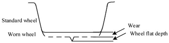 Wheels are the most important bearing and moving parts of a train that have a crucial impact on driving safety. Railway wheel flats are induced by unintentional sliding between the wheel and rail at braking [1,2]. The additional periodic impact load caused by wheel flats is related to the depth and length of flats, as well as the train speed and load, which even can be several times the wheel static load [3,4,5,6]. Wheel flats are the main causes of wheel bearing damage, axle temperature rise, axle fracture, as well as rail and concrete sleeper fracture [7,8]. Rapid and accurate detection of wheel flats is important to ensure the train operation safety.