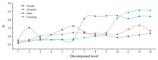 Comparison of H for different types of reconstructed signals under different decomposed levels.
