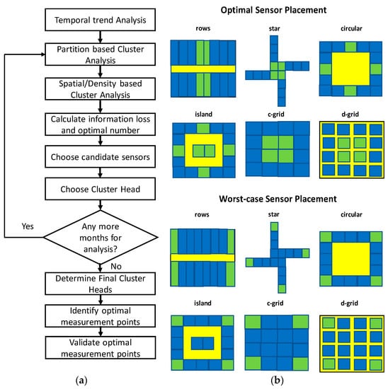 - Yoganathan, D.; Kondepudi, S.; Kalluri, B.; Manthapuri, S. Optimal sensor placement strategy for office buildings using clustering algorithms. Energy Build. 2018, 158, 1206–1225. [Google Scholar] [CrossRef]