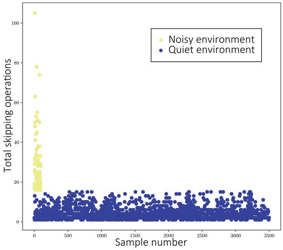 The distribution of skipping operations for quiet and noisy environments.