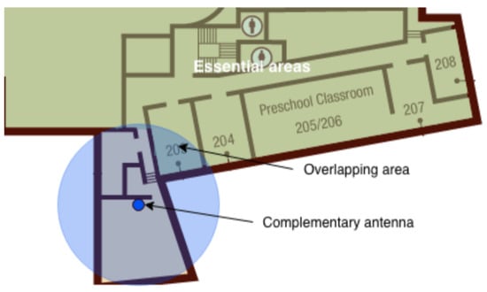 Complementary antennas aim to locate inhabitants in indoor/outdoor environments (general areas) that are not considered neither essential areas nor transition areas among essential areas. Complementary antennas can even be omitted when the number of antennas is limited (e.g., for budget limitations). The main difference between essential areas and general areas is whether erroneous localization of inhabitants is acceptable or not when they stay in such areas. Unlike essential areas, in general areas the accuracy of the localization result is not a priority.