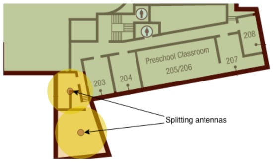Due to unusual geometries with respect to those covered by an antenna (i.e., almost circular sensitivity area) there could be blind or overhung zones. These phenomena are circumscribed applying a splitting policy whose role is to cover these special areas with likely squared surfaces. In general, these antennas are named splitting antennas and are placed in the center of these subareas.