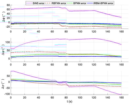 Contrast results of attitude error using three methods.