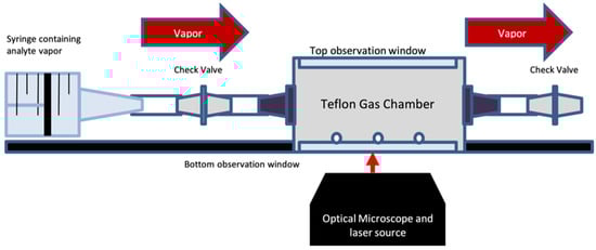 Figure 2. Vapor exposure setup using a custom-built gas chamber, micromachined from Teflon.