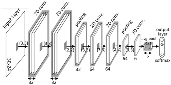 The energy consumption of CNNs is closely related to their network architecture, especially the depth of the network and the number of network parameters. The “Network-in-Network” (NiN) architecture was recently proposed together with global average pooling (GAP), which replaces the fully connected layers in CNN [27]. GAP can represent the relationship between feature maps and categories more effectively than a fully connected layer and is more robust to spatial translations of the input data [27]. In addition, our previous work [16] proved that FCNs using GAP can reduce the number of network parameters without sacrificing the recognition rate. Therefore, we used FCNs to reduce the number of network parameters and varied the network depth to find the optimal network structure.