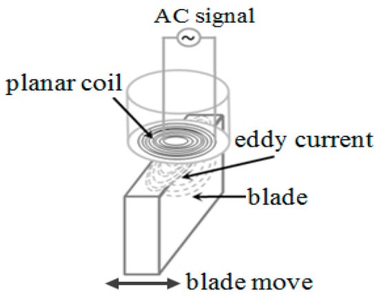 Based on the existing studies, inductive sensors have been developed and have gained considerable success for their simple structure, low cost, and easy installation []. It is immune to contaminations when compared with industry standard optical probes [] and offers the possibility of being able to take blade passing data through the casing [,]. The inductive method is potential to monitor the dynamic blade tip clearance and blade arrival timing simultaneously.