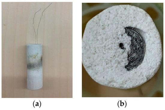 (a) Encapsulated sensor; (b) Sensor Coil in the encapsulation.
