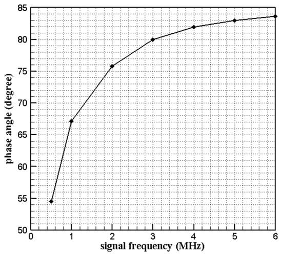 In order to determine the signal frequency in the experiment and the quality of the sensor, the phase angle of sensor at different frequency were measured by LCR meter and Figure 7 shows the result. The sensor phase angle is over 80° when the frequency is over 4 MHz from Figure 7 so the frequency was determined as 4 MHz.