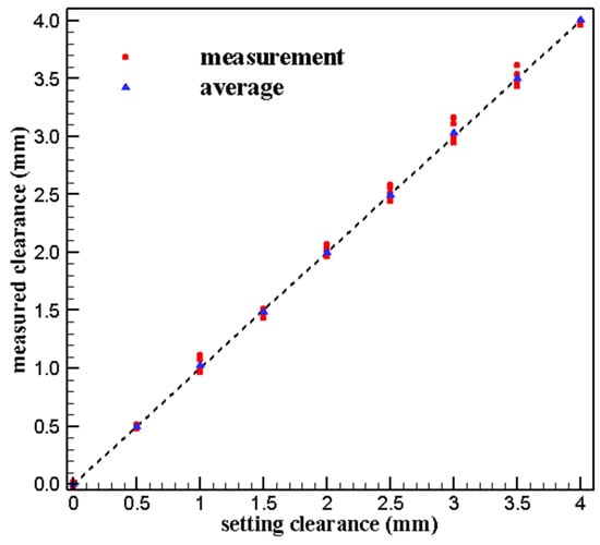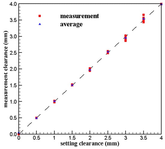 The clearance measurement results at different positions are plotted in Figure 11 and the relative error of measurement results are listed in Table 4. It can be seen that the measurement error is smaller within 2.5 mm while it is larger over 3 mm, especially at 3 mm, the relative error reaches the maximum of 5.4%.