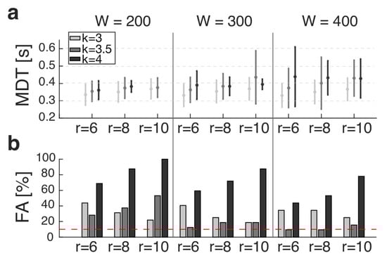 - If r = 8, the MDT was 0.40±0.15 s, with FA equal to 9.4%.