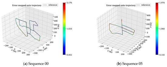 Since the KITTI dataset is a large-scale urban or highway environment, there is an accumulative error between two frames during the tracking, so its accuracy depends on the global BA optimization after detecting the closed loop. However, in the localization and mapping of the actual environment, especially for large-scale scenes, the car often do not go through the same scene, so closed-loop information is often difficult to obtain. This is a major challenge for current SLAM systems without closed-loop information to eliminate accumulating drift. Similar to VINS-Fusion [41], we can optimize the entire tracking trajectory by GPS to improve the accuracy of the SLAM system.