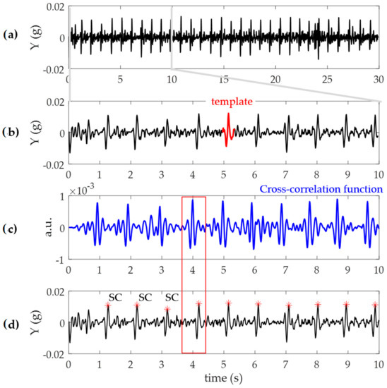- Computation of the cross-correlation between the identified template and the 30 s signal segment (Figure 3c);