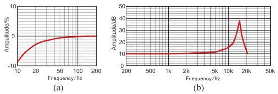 The amplitude responses of the three-component piezoelectric sensor: (a) low frequency; (b) medium and high frequency [33].