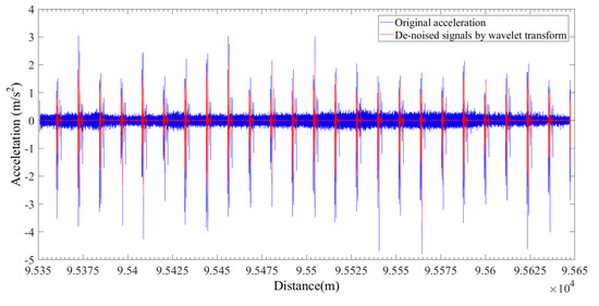 Comparison between original signals of inertial measurement acceleration and de-noised signals through wavelet transform.