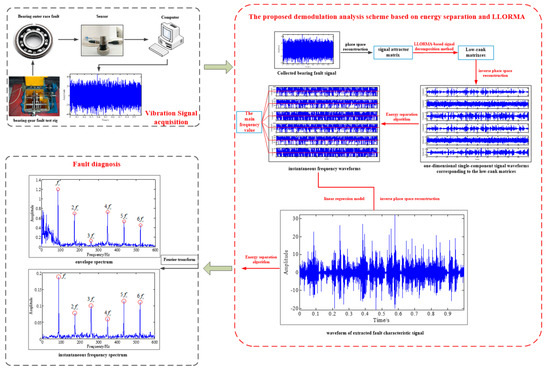 Flowchart of the proposed novel demodulation analysis technique based on energy separation and LLORMA.