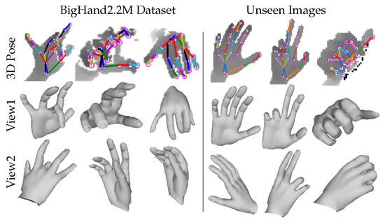 - Ge, L.; Liang, H.; Yuan, J.; Thalmann, D. Robust 3D hand pose estimation in single depth images: From single-view CNN to multi-view CNNs. In Proceedings of the IEEE Conference on Computer Vision and Pattern Recognition, Las Vegas, NV, USA, 26 June–1 July 2016; pp. 3593–3601. [Google Scholar]