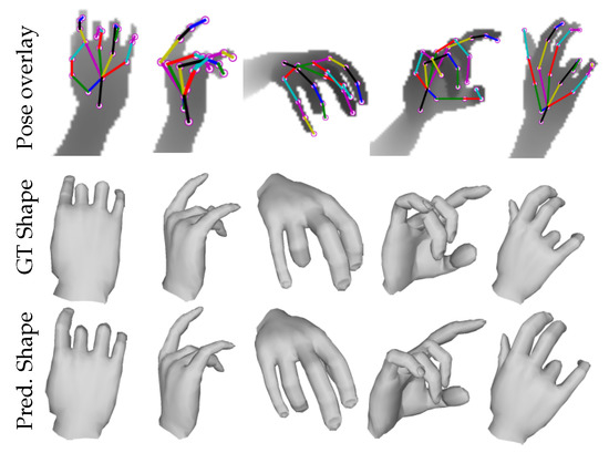 - Khamis, S.; Taylor, J.; Shotton, J.; Keskin, C.; Izadi, S.; Fitzgibbon, A. Learning an efficient model of hand shape variation from depth images. In Proceedings of the IEEE Conference on Computer Vision and Pattern Recognition, Boston, MA, USA, 8–10 June 2015; pp. 2540–2548. [Google Scholar]