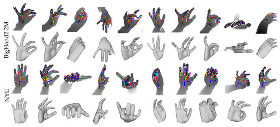 - Yuan, S.; Ye, Q.; Stenger, B.; Jain, S.; Kim, T.K. Bighand2. 2m benchmark: Hand pose dataset and state of the art analysis. In Proceedings of the 2017 IEEE Conference on Computer Vision and Pattern Recognition (CVPR), Honolulu, HI, USA, 21–26 July 2017; pp. 2605–2613. [Google Scholar]