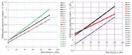 It can be seen from Equation (2) that there exists good linearity between the differential capacitance output ΔC and the measured skin friction τw.
