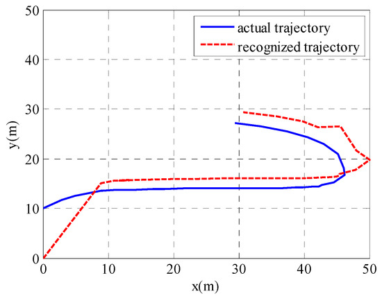 In order to visualize the tracking performance, a single trial performance of target tracking is shown in Figure 8. We can see that the trajectory recognized by the proposed algorithm is close to the actual trajectory of the target, except for at the initial time and at the moment of a sharp turn.
