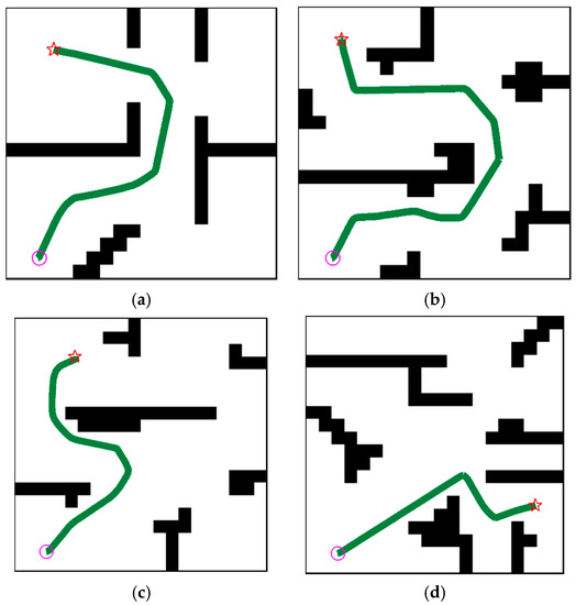 - Kavraki, L.E.; Švestka, P.; Latombe, J.C.; Overmars, M.H. Probabilistic roadmaps for path planning in high-dimensional configuration spaces. IEEE Trans. Robot. Autom. 1994, 12, 566–580. [Google Scholar] [CrossRef]