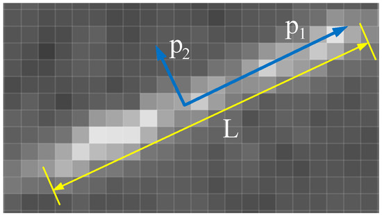The shape features of a star point include moving direction, length, width, and length-width ratio. A star point is composed of a series of discrete pixels, and each pixel is a two-dimensional vector, including abscissa and ordinate. PCA is used to process the star point pixels, which can quickly and accurately calculate the shape features [18]. The moving direction of star point is the principal component direction, and the degree of data dispersion is large. While in the direction perpendicular to the moving direction, the degree of data dispersion is small.