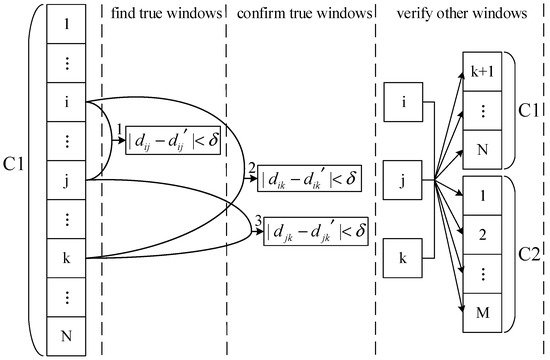 Based on , the remaining windows of and all windows of are verified by the triangle rule. If the verified window satisfies the invariant angular distance, it is a true star window, otherwise it is a fake star window.