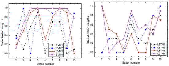 We compare the ILS model with the above independent classification, which shows the superiority of the ILS. The model that is presented below is compared with different voting methods of ensemble learning. Figure 13 shows how the classifier weights used in the ILS model change with the batch.