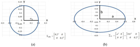 The idle state with zero wind velocity is obtained from a normal dispersion having symmetrical kernel width along the x-, y-, and z-axis on grid cell; a diagonal matrix with variance data represents this state as seen in Equation (11).