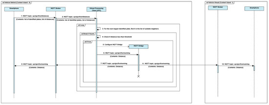 - Warning generation: If the distance between the license plate of the vehicle travelling ahead and the camera of the device present in the vehicle behind is less than a defined safe distance, the drivers of both the vehicles are alerted. A warning is displayed on the smartphone screen at the vehicle behind, and taking advantage of inter-island communication, the driver of the vehicle ahead is also notified. The IP address of the island core of the vehicle ahead is known as it was a part of advertisement messages being broadcasted by each vehicle or content island; this information would appear in the neighbour list prepared in the first step.