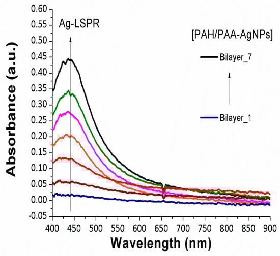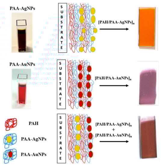 - Rivero, P.J.; Goicoechea, J.; Urrutia, A.; Matias, I.R.; Arregui, F.J. Multicolor layer-by-layer films using weak polyelectrolyte assisted synthesis of silver nanoparticles. Nanoscale Res. Lett. 2013, 8, 438. [Google Scholar] [CrossRef]