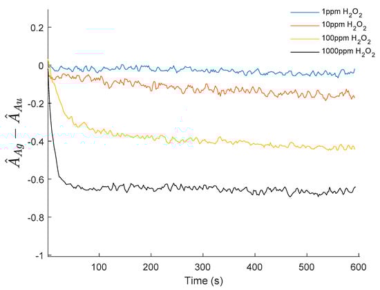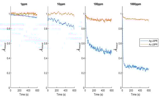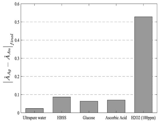 3.4. AgNPs Optical Fiber Sensor with AuNPs Reference