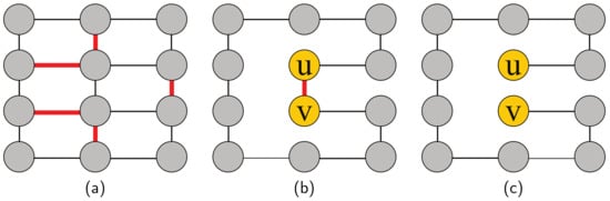 We have proposed the procedure of the reduction above and will present an example of the reduction. We use bold red line to represent the deleted edge (Figure 2a). After removing all bold red lines, there exists a Hamiltonian cycle in the graph (Figure 2b) and in Figure 2c we can find a Hamiltonian path from u to v, which is the minimum case of the closeness of the leader node u. Therefore, we have proved that the LCVMIN problem is NP-hard by this reduction. □