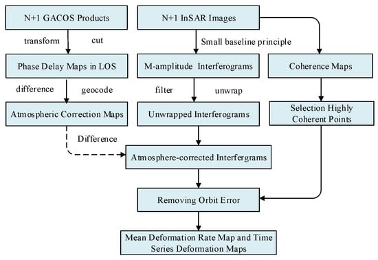 The basic principle of GACOS-based SBAS-InSAR is to take the single InSAR deformation results corrected by the GACOS atmospheric product as the observed values and process these data using the SBAS technique.