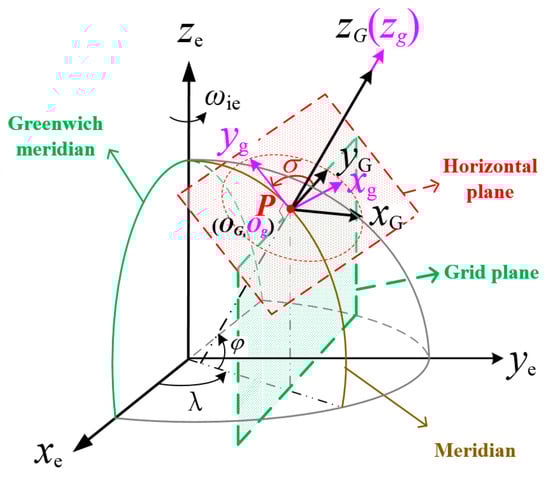 As shown in Figure 1, the grid SINS chooses the right-handed grid frame as the navigation frame.