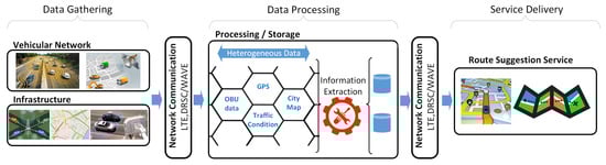 Generally, route suggestion services rely on data from specific regions, as traffic conditions, which may be irrelevant to other regions of a city. In this scenario, such service may exchange a large amount of data from heterogeneous data sources [7,12] to monitor the traffic conditions in a particular region. Moreover, the data may have real-time constraints and it can be disseminated using different communication technologies [13] and considering the dynamic topology, frequent network disconnections and cooperative communication [14]. It is worth noticing that sending data to a single central entity (e.g., Cloud) is a waste of system resources, such as network bandwidth. Moreover, data transmissions are more vulnerable to specific problems, such as delays, data loss, scalability, and communication disruption. Hence, route suggestion services in ITSs are not well suited to centralized architectures such as Cloud computing [8,12,13,15,16,17].