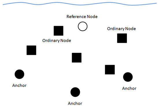 (2) Ordinary nodes are nodes which should get their positions by communicating with anchors directly or indirectly. Ordinary nodes can be divided into 2 types: the reference nodes and the unknown ordinary nodes. Reference nodes are nodes which are selected by anchors to assist in the localization process, while unknown ordinary nodes are nodes which should get their positions by communicating with anchors and selected reference nodes.