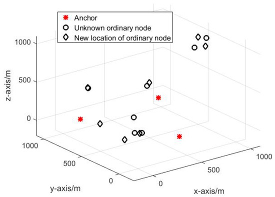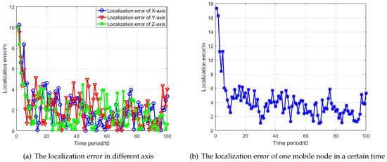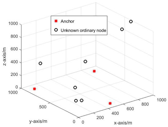 Ten nodes are deployed in a 1000 m × 1000 m × 1000 m region including 3 anchors and 7 unknown ordinary sensor nodes. The anchors’ positions are known and accurate before the localization process. The estimation period in the simulation experiments.