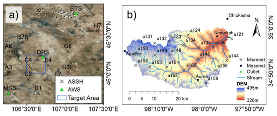 - Kaihotsu, I.; Yamanaka, T.; Koike, T.; Oyunbaatar, D.; Davaa, G. Ground truth for evaluation of soil moisture and geophysical/vegetation parameters related to ground surface conditions with AMSR and GLI in the Mongolian Plateau. Available online: https://www.researchgate.net/publication/288256285_Ground_truth_for_evaluation_of_soil_moisture_and_geophysicalvegetation_parameters_related_to_ground_surface_conditions_with_AMSR_and_GLI_in_the_Mongolian_Plateau_ground-based_observations_for_the_ADEO (accessed on 11 September 2019).