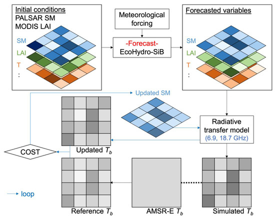 - Sawada, Y.; Koike, T.; Walker, J.P. A land data assimilation system for simultaneous simulation of soil moisture and vegetation dynamics. J. Geophys. Res. Atmos. 2015, 120, 5910–5930. [Google Scholar] [CrossRef]