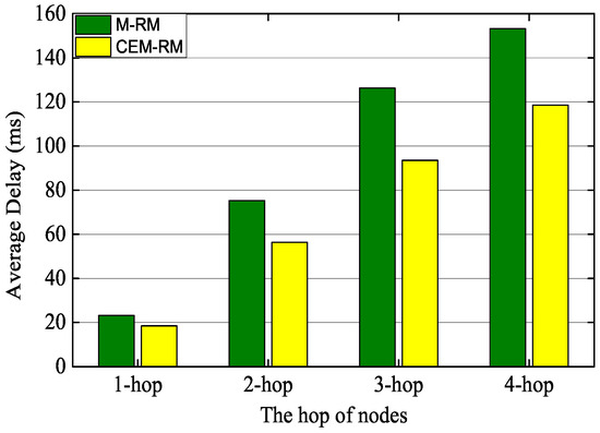 Comparison of average end-to-end delay between CEM-RM and M-RM.