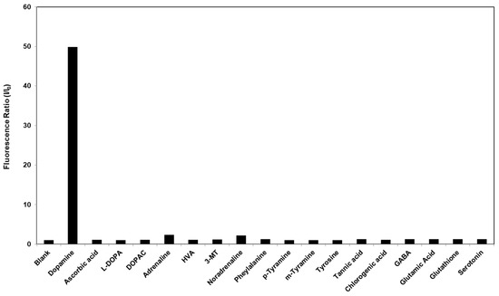 Various studies have been performed on the optical determination of dopamine from the viewpoint of the native fluorescence properties of dopamine, the efficiency of fluorescence quenching based on the reaction between dopamine and HRP (horseradish peroxidase), the utilization of quantum dots, and the derivatization of dopamine by ethylenediamine following oxidation using mercury(II) nitrate [9,10,11,12,13,14].