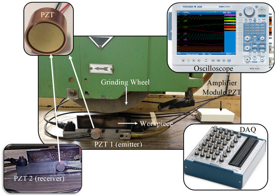 - Alexandre, F.; de Aguiar, P.; Götz, R.; Aulestia Viera, M.; Lopes, T.; D’addona, D.; Bianchi, E.; Silva, R.B. da Emitter-Receiver Piezoelectric Transducers Applied in Monitoring Material Removal of Workpiece during Grinding Process. Proceedings 2018, 4, 9. [Google Scholar] [CrossRef]